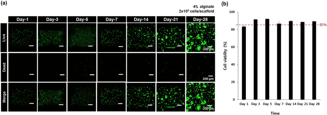 圖5 β細胞在生物3D打印結構中的長期增殖
