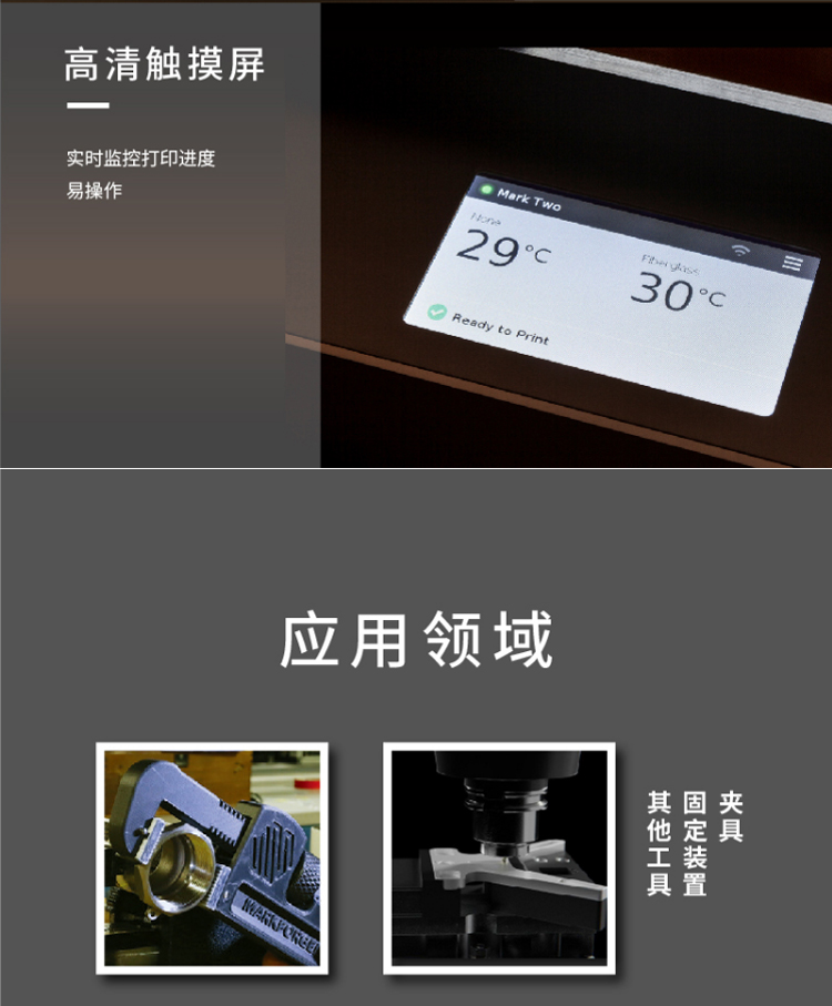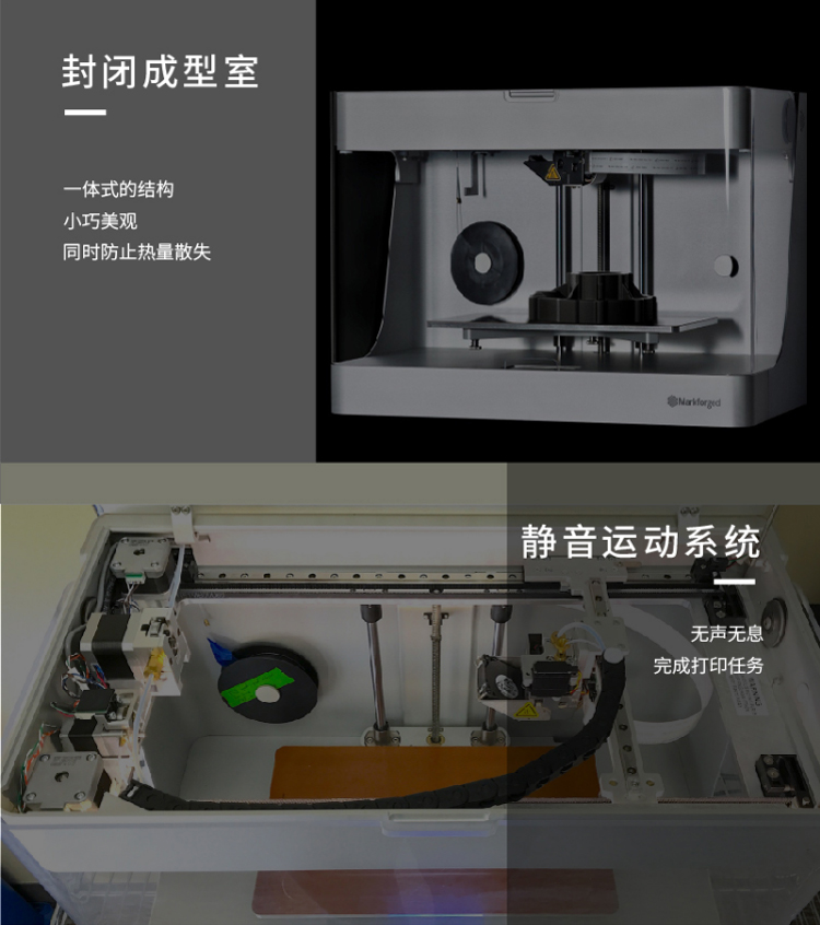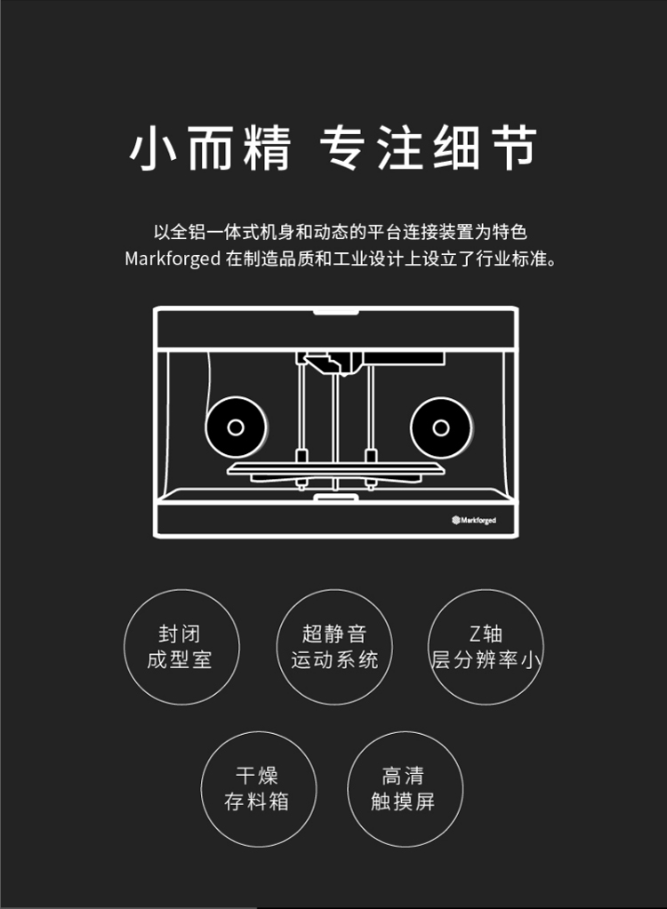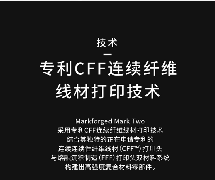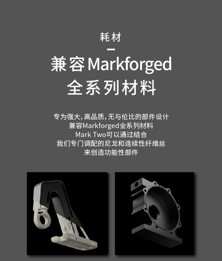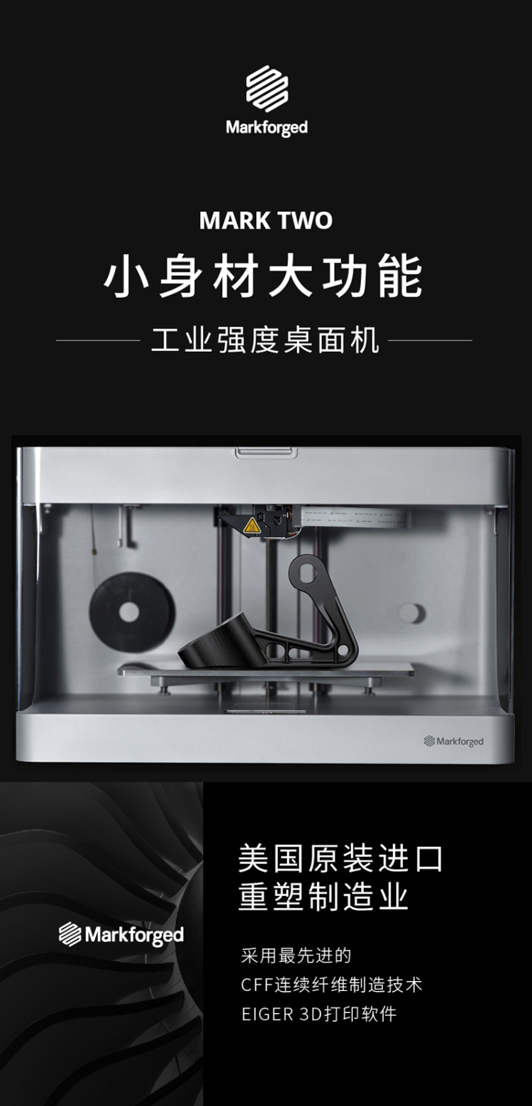 Markforged Mark Two連續碳纖維3D打印機,由美國3D打印技術公司Markforged推出。該打印機采用了Markforged自主研發的獨特技術,可以在同一設備上打印出強度高、精度高、耐熱、耐腐蝕等性能優異的零部件。Markforged Mark Two的打印材料包括了碳纖維、玻璃纖維、金屬、Kevlar等多種材料,可以滿足不同行業的需求。其支持的最大打印尺寸為320mm x 132mm x 154mm,可以打印出大型零部件,提高生產效率。還配備了自動校準和自動切換打印頭等功能,使得打印過程更加簡單和高效。此外,該打印機還支持云端管理和遠程監控,可以隨時隨地掌握打印進度和狀態。