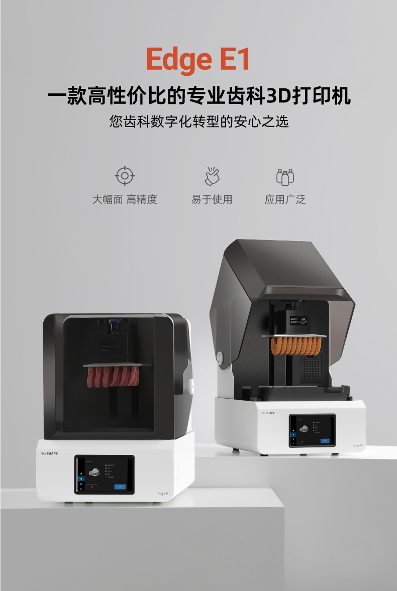 Rayshape高性價比的專業齒科3D打印機開啟數字化齒科的理想之選,Edge E1系列視覺層次豐富,質感細膩,操作細節對用戶友好取拿成型平臺與樹脂槽等高頻操作,均可以在較短路徑完成操作。